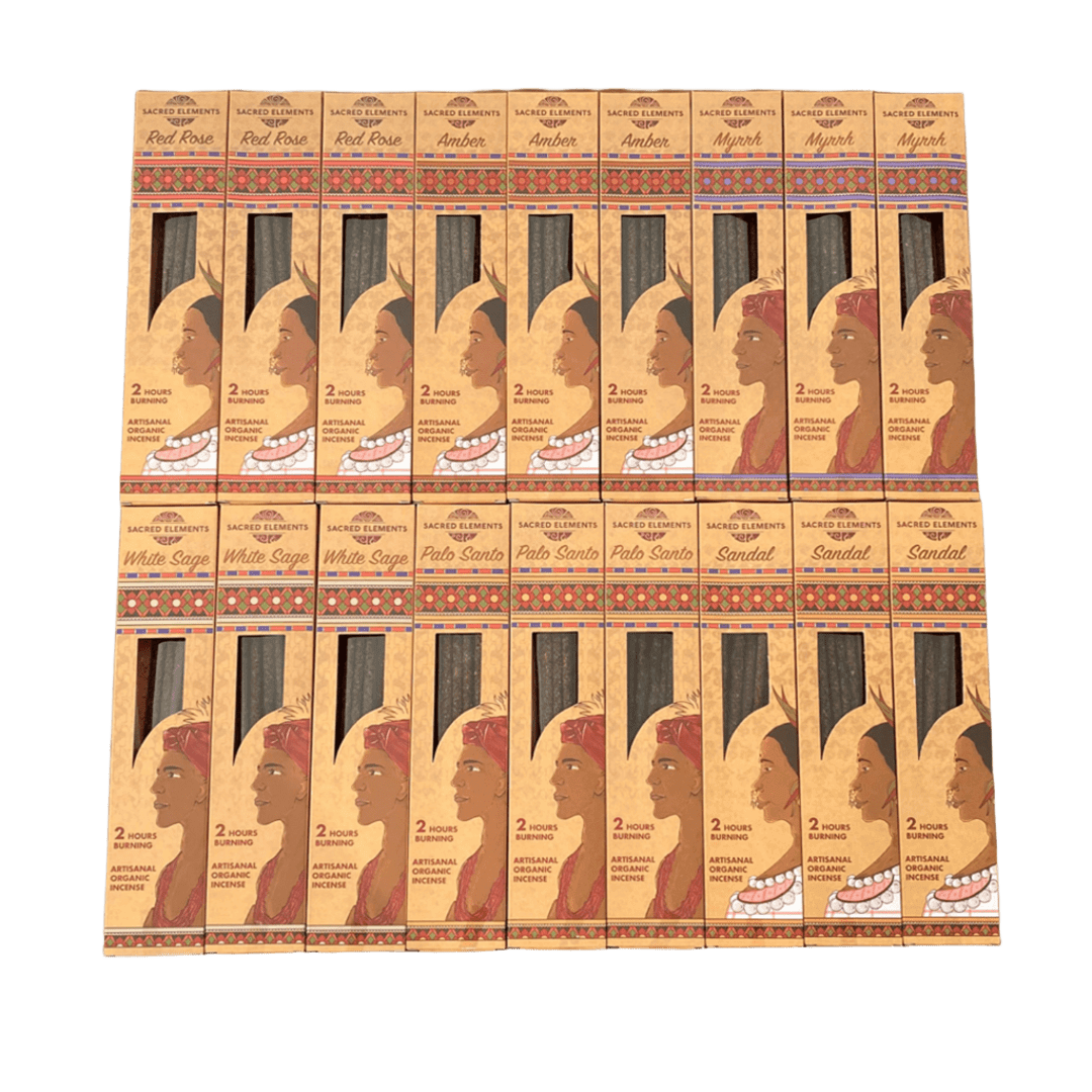 Esta caja contiene 34 paquetes de sahumerios orgánicos artesanales tanto en varillas como en conos de diferentes fragancias únicas y 2 sets completos para sahumar con una combinación especial para purificar tus espacios, equilibrar tu energía y elevar tus rituales.